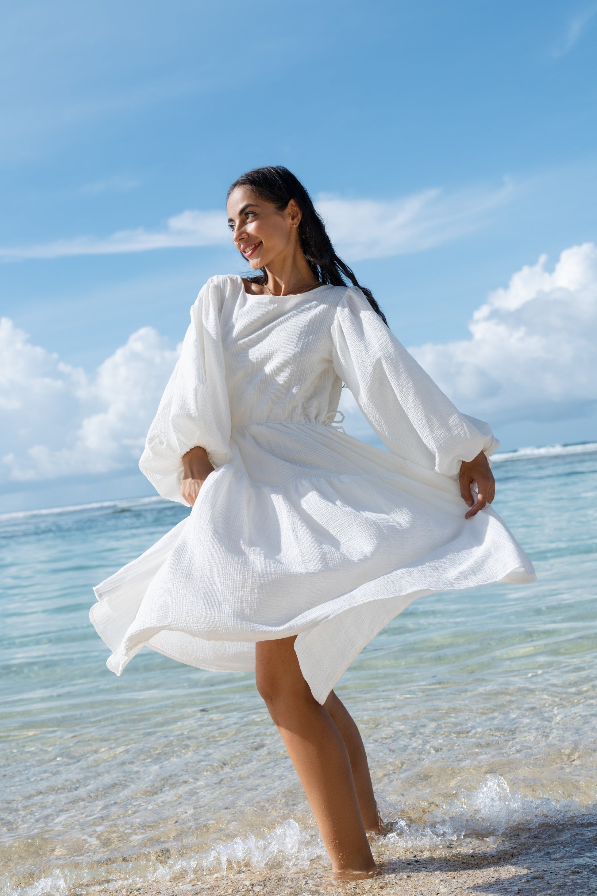 Každý kousek vzniká pomalu, s důrazem na detail, kvalitní přírodní materiály a nadčasový střih. Navrhuji i šiji mezi Českem a Bali – inspirovaná svobodou, ženskostí a jednoduchou elegancí, tak aby lichotil každé postavě.