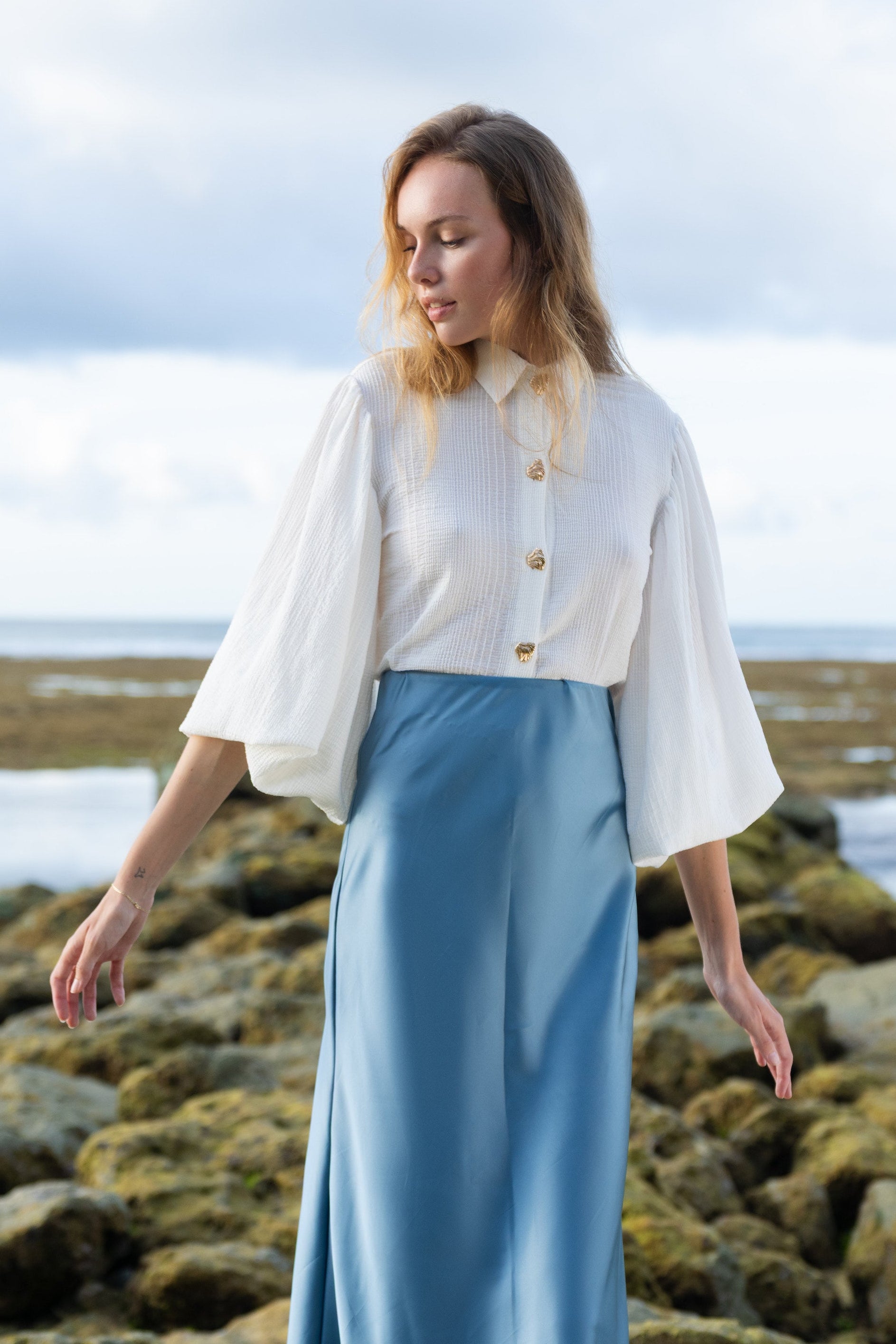 Každý kousek vzniká pomalu, s důrazem na detail, kvalitní přírodní materiály a nadčasový střih. Navrhuji i šiji mezi Českem a Bali – inspirovaná svobodou, ženskostí a jednoduchou elegancí, tak aby lichotil každé postavě.